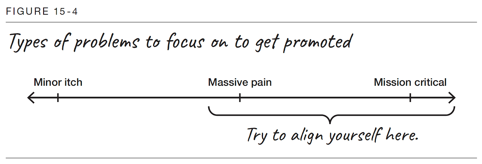 The more you align yourself with solving massive pains and mission-critical problems, the more likely people will be to recognize your potential—and your promotability. (See figure 15-4.)