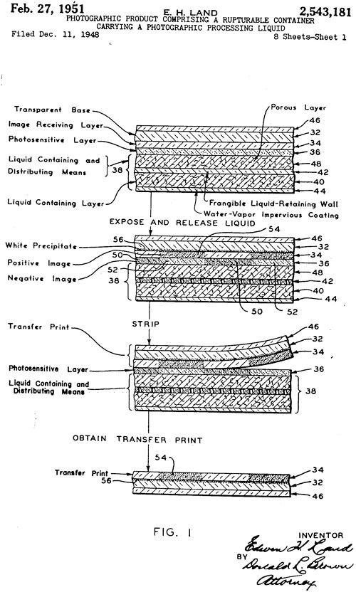 - Developed a film that could expose and develop itself using layers of chemicals activated by light and pressure over the next few years